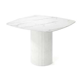 Элегантный квадратный стол Фелис очаровывает формой своего подстолья. Его плавные линии и красивые изгибы непременно окутают Ваш дом зрительным теплом и уютом.Столешница выполнена из МДФ со скошенной кромкой. Это позволяет придать столу визуальную лёгкость, но при этом не потерять высокие показатели прочности столешницы. В качестве материала отделки используется HPL c текстурой белого мрамора, который придаёт изделию высокую устойчивость даже к самым активным действиям на его поверхности, что обеспечивает долгие годы его эксплуатации для Вас.