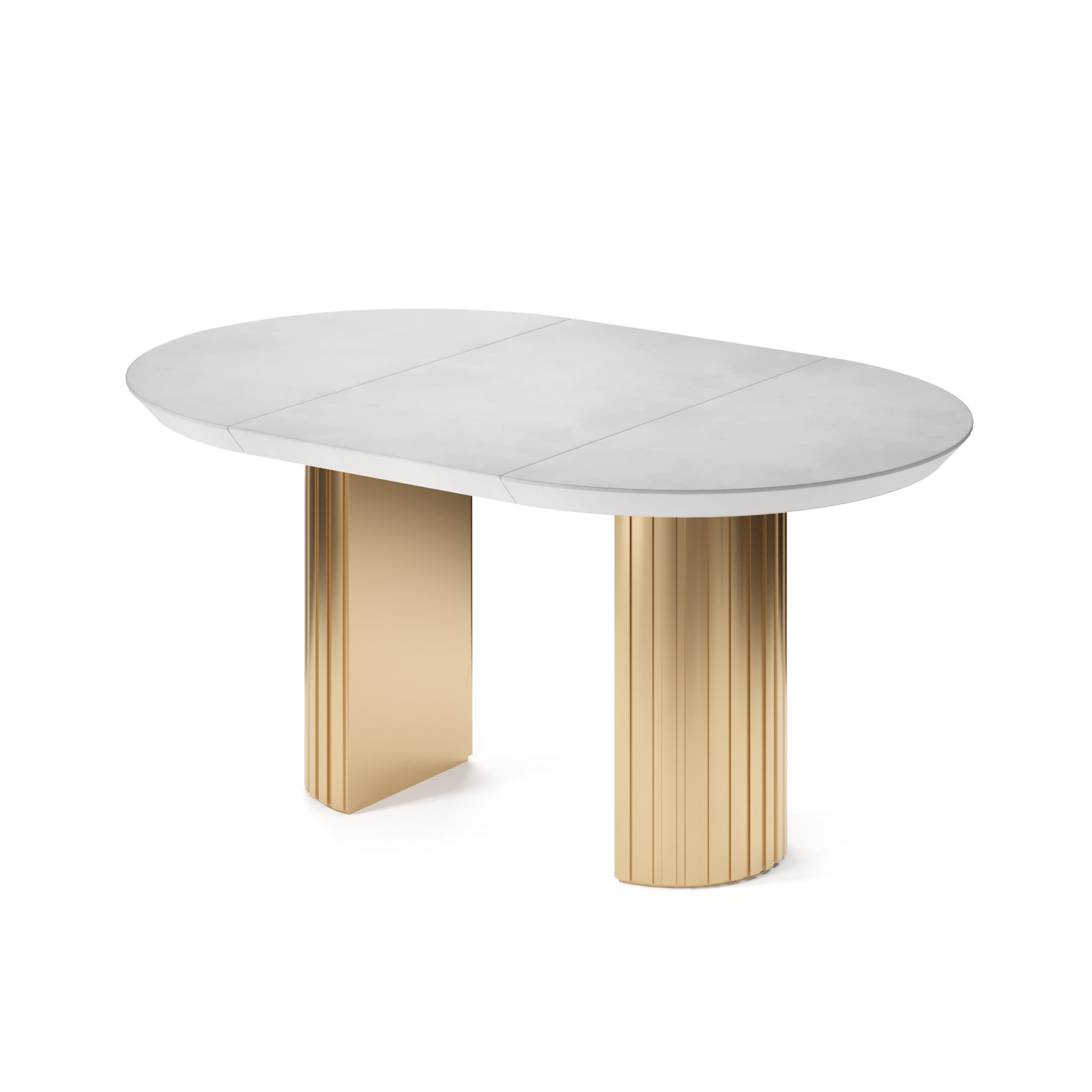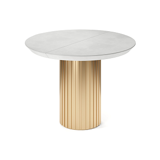 Подстолье изготовлено из МДФ и покрыто золотой эмалью. При раскладывании стола подстолье делится на два полукруга.