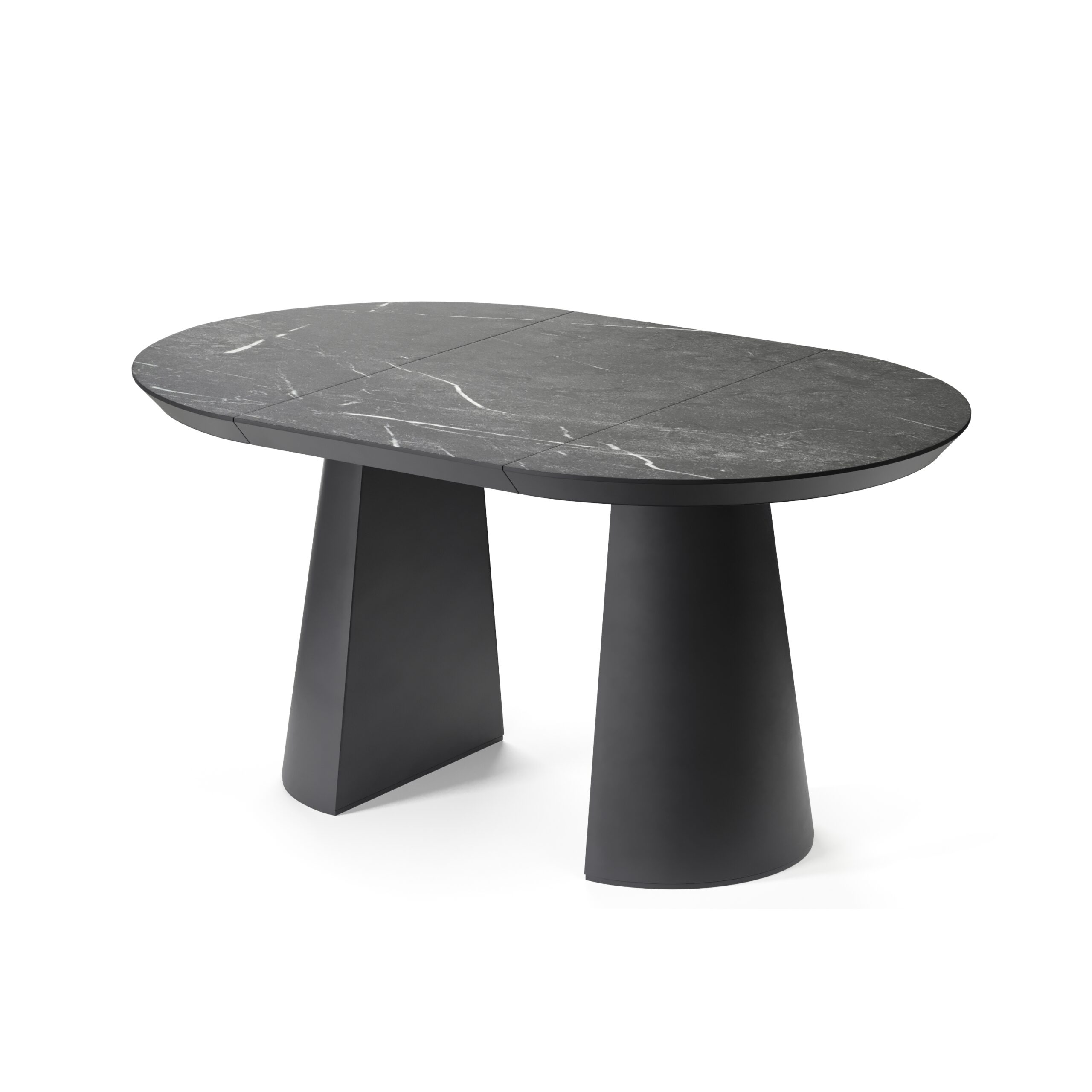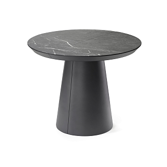 Подстолье диаметром 550 мм в широкой части изготовлено из МДФ и покрыто чёрной эмалью с двумя слоями защитного матового лака. При раскладывании стола подстолье делится пополам.